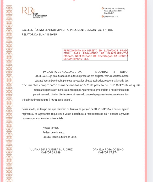 O orçamento previsto para outubro de 2025 indica déficit de R$ 2,7 milhões caso a emissora siga sem receita da afiliada carioca. A petição alerta que a manutenção da suspensão representa risco de colapso empresarial e inviabilização da função social da empresa, contrariando objetivos da recuperação judicial.
