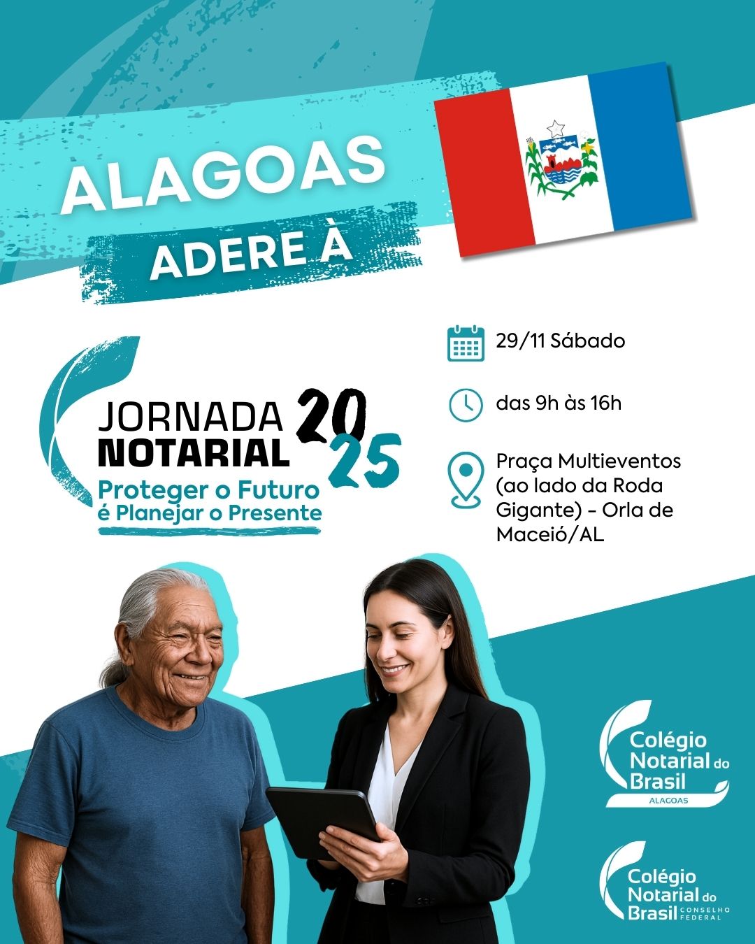 Os Cartórios de Notas de Alagoas realizam no próximo sábado, 29, das 9h às 16h, uma ação voltada à proteção pessoal e patrimonial de pessoas idosas. A atividade ocorrerá na Praça Multieventos, na orla de Maceió, como parte da Jornada Notarial 2025 – “Proteger o Futuro é Planejar o Presente”, promovida simultaneamente em todo o país.