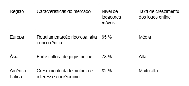 Os países da América Latina, incluindo Brasil, Chile, Peru e Colômbia, demonstram um crescimento econômico constante e digitalização. O surgimento de smartphones acessíveis e o desenvolvimento de sistemas de pagamento como PIX e Mercado Pago tornaram os jogos online incrivelmente convenientes.