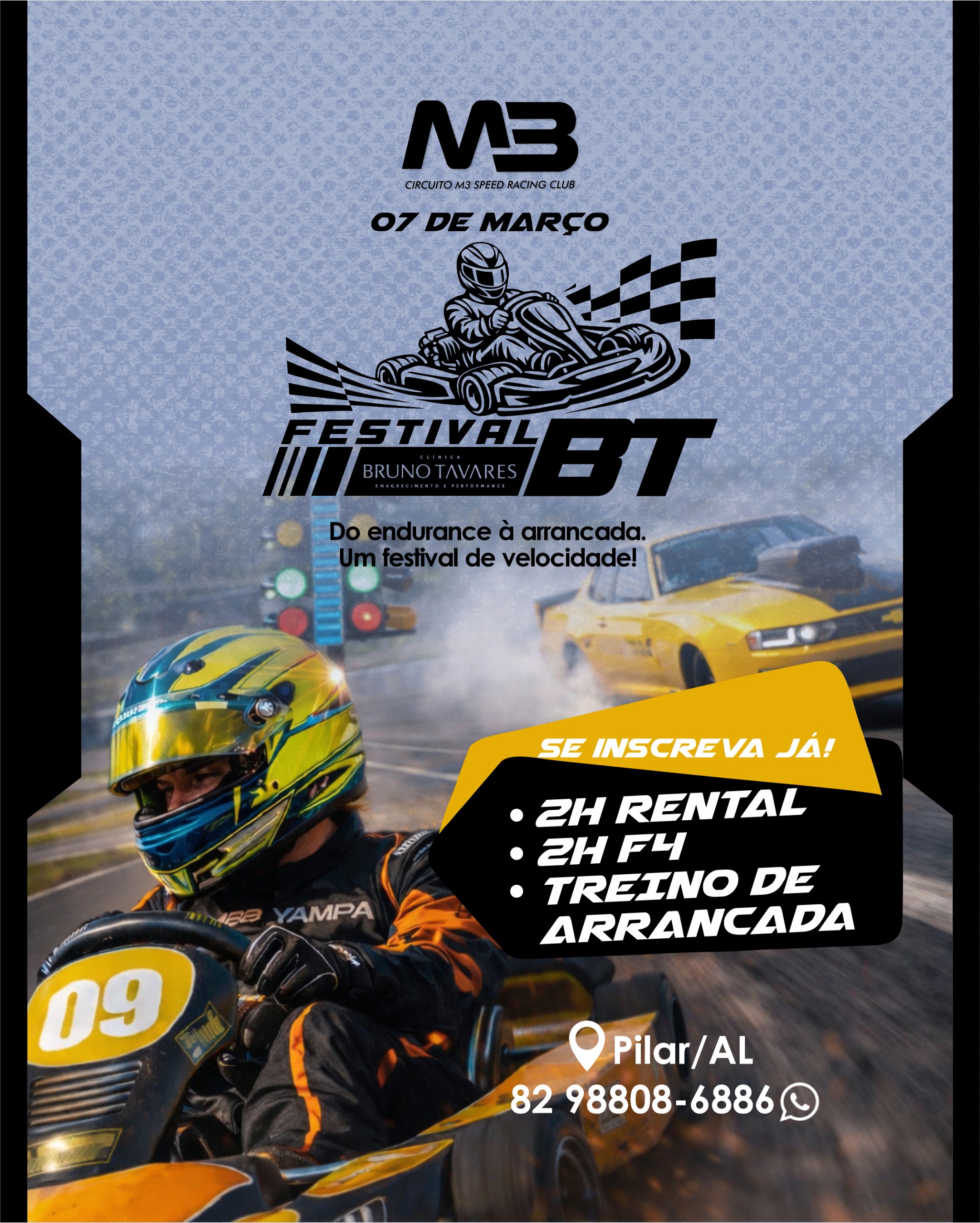 As inscrições já estão abertas e podem ser realizadas por meio do site oficial do circuito M3. A expectativa é de casa cheia para a abertura da temporada, consolidando o kart como uma das principais modalidades do automobilismo alagoano.