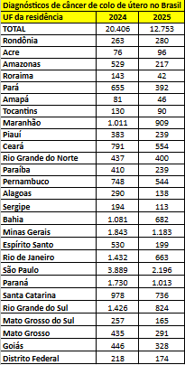 Dados nacionais indicam que o câncer de colo do útero é o terceiro tumor mais frequente entre mulheres no Brasil, com estimativa de 19,3 mil novos casos por ano no triênio 2026-2028, segundo o Instituto Nacional de Câncer (INCA). Apenas até meados de março deste ano, o país já havia registrado 682 novos diagnósticos. Em Alagoas, o número de casos também chama atenção: foram 138 registros em 2025 e 290 em 2024.