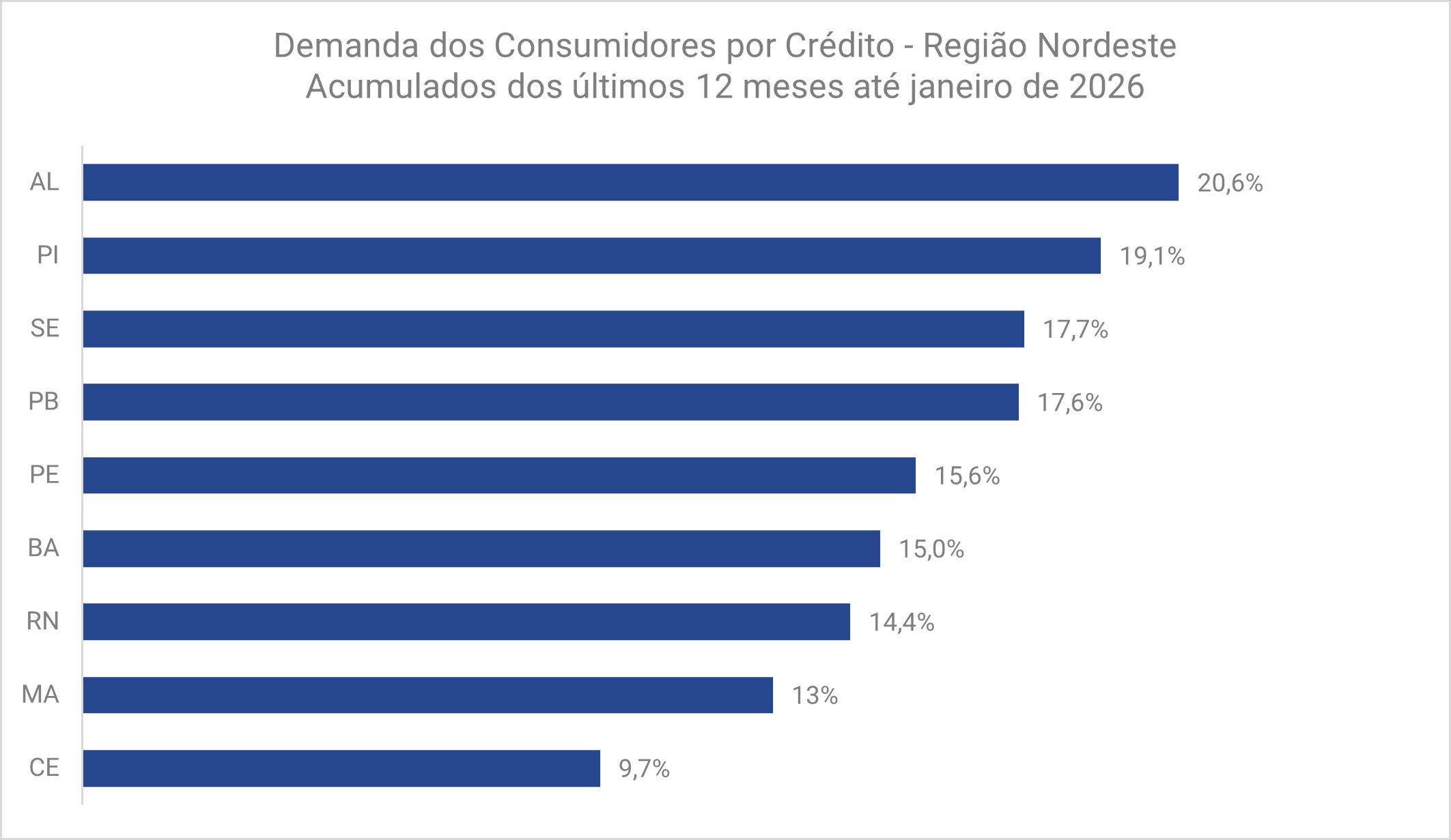 No recorte regional, Alagoas aparece à frente de estados como Piauí (19,1%), Sergipe (17,7%) e Paraíba (17,6%), todos também com alta significativa na demanda por recursos financeiros. O avanço generalizado indica uma tendência de maior dependência do crédito entre consumidores nordestinos, especialmente em um cenário de pressão sobre a renda.