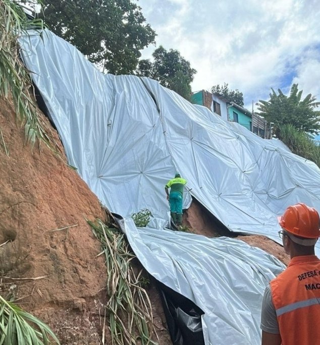 Proteção de encostas com lonas chega a 54 pontos de Maceió