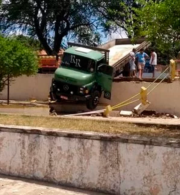 Caminhão perde controle e invade praça no interior