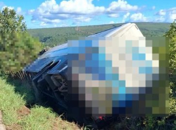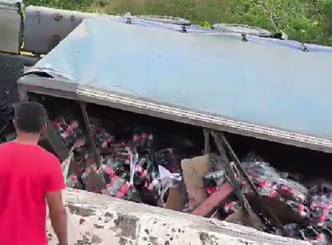 Motorista desviou de uma carreta em manobra arriscada, mas não pode impedir que veículo tombasse