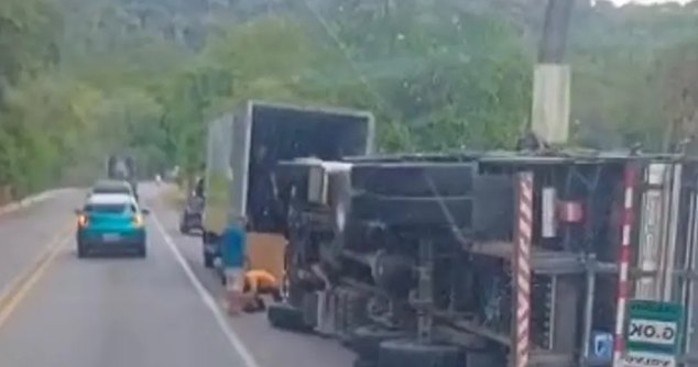 Carreta de bebidas tomba em Satuba e carga é saqueada