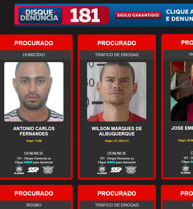Segurança Pública lança plataforma com lista de criminosos mais procurados