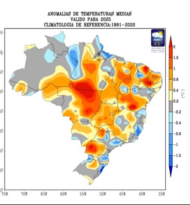 2025 foi o 7º ano mais quente no Brasil desde 1961, segundo Inmet
