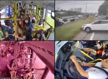 Câmera flagra ônibus desgovernado em acidente com 16 veículos em São Paulo