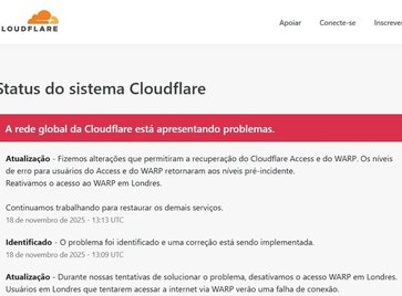Instabilidade na Cloudflare derruba sites e serviços nesta terça-feira