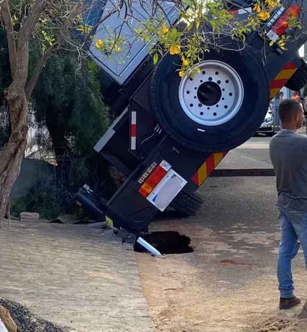 Câmeras registraram o momento em que o asfalto cedeu durante instalação de piscina