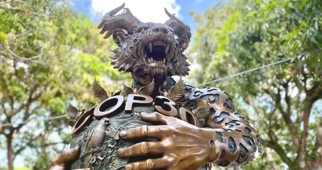 Escultura que mistura dragão e onça é vista por religiosos como símbolo “demoníaco”