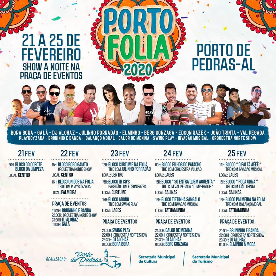 O município de Porto de Pedras, no litoral Norte do estado, manterá este ano a fórmula de sucesso de outros carnavais, descentralizando a folia em três pontos: nos povoados Tatuamunha e Lages e no Centro da cidade. Nesses locais, o comando da festa fica por conta dos blocos carnavalescos, num total de 12, que percorrerão as ruas em horários diversos, levando alegria, irreverência e tradição à população e turistas.