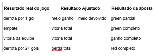 Handicap -1: o time precisa vencer por dois gols ou mais para gerar lucro.