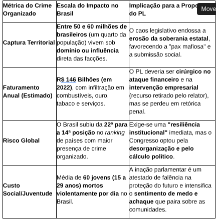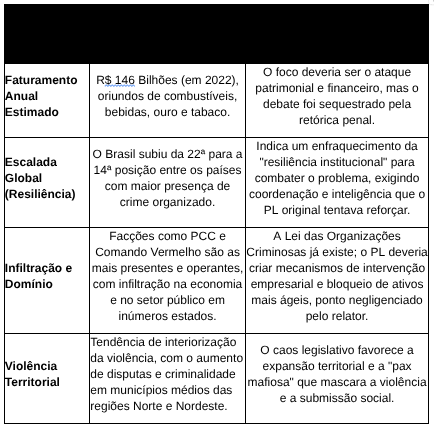A irresponsabilidade desse debate parlamentar adquire contornos dramáticos quando confrontada com a dimensão real da ameaça que o crime organizado representa, números que o Congresso escolheu ignorar: